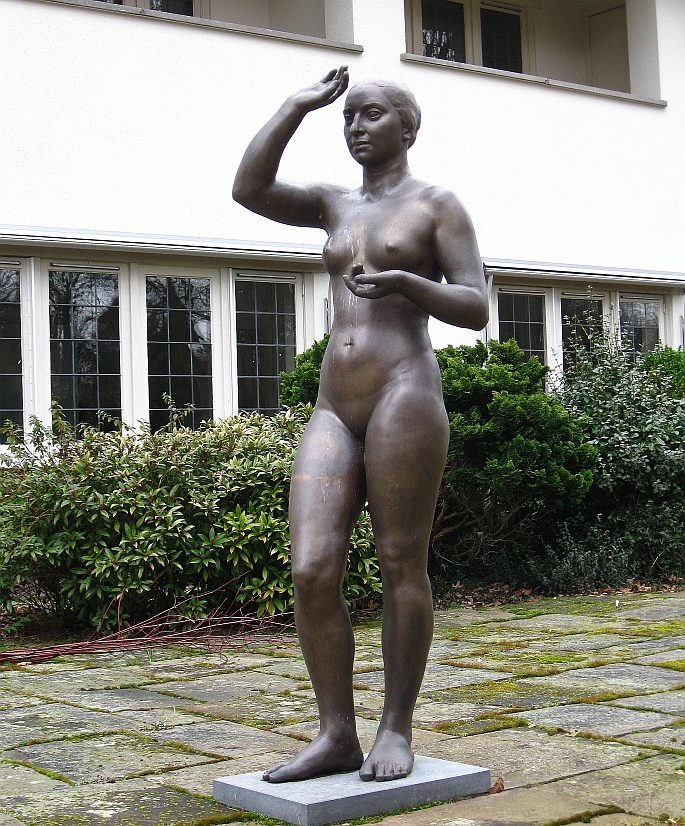 (Bronzen beeld bij het voormalige gemeentehuis Nederheem. Het heet L’Afghane, de vrouw houdt haar hand op tegen de zon. Het is vervaardigd door August Suter, geboren in 1887 bij Basel en leerling van Rodin. Ereburger J. van Campen heeft het beeld in 1978 aan Blaricum geschonken.