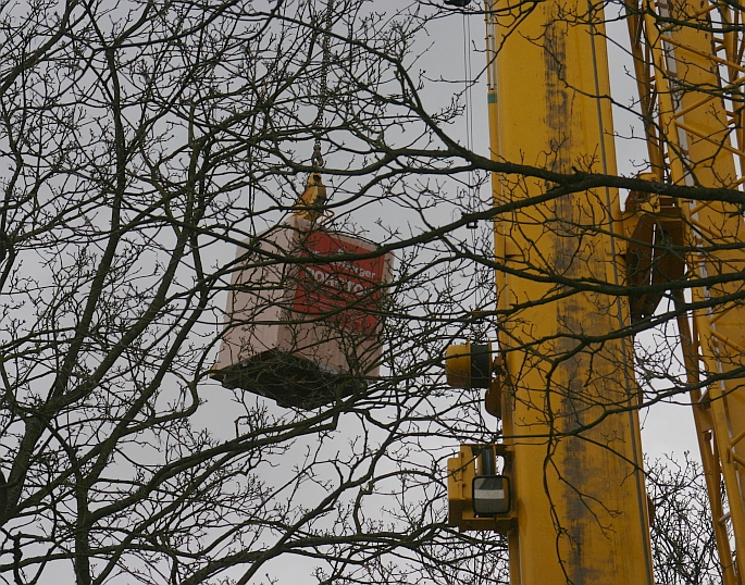zacht gekreun van gele hijskraanpoot