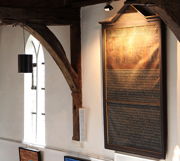 Paneel in de Johanneskerk aan de Naarderstraat in Laren, waarop staat te lezen dat Blarikum in 1605 van Huysen is gescheiden en toegevoegd aan Laaren. Weliswaar kerkelijk, maar het fundament van de BEL is met enige fantasie ruim 400 jaar oud.