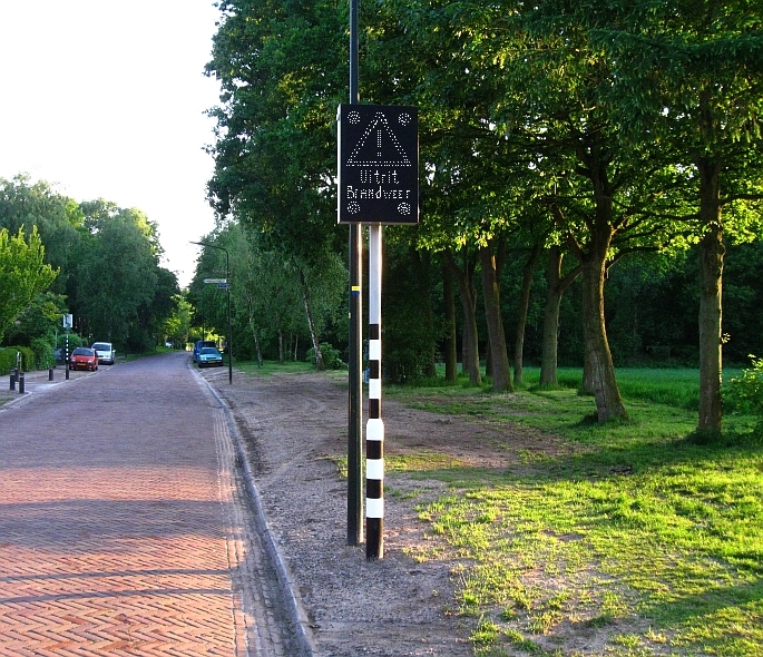 Blaricum heeft een nieuw fenomeen. Het gaat om de BUP, de Brandweer Uitrukpaal. Twee ervan zijn onlangs aangeplant bij de kruising Singel/Bergweg. Als de brandweer uitrukt (volgens de dienstdoende gemeenteambtenaar a-l-t-i-j-d langs dit kruispunt), gaan de borden knipperen en wuiven en zo. Voor de sprekende versie – Ruim baan, ruim baan, daar komen de spuitgasten aan! in een vette 96 dB dus retecool Metallica-volume – was geen geld, maar wat niet is zal zeker komen. Want nee zeggen waar een kleine ja-ruimte bestaat – zo werkt dat bij de utiliteitsdiensten niet, hoor.