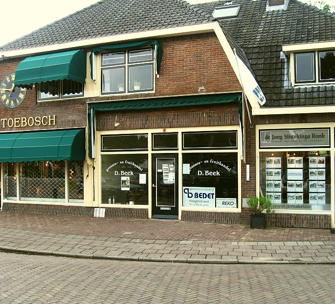 Waar Beek zat, zou een delicatessenwinkel komen. Die zou voor Pasen opengaan. Nu is het bijna Pinksteren. Ook in Blaricum vallen Pasen en Pinksteren niet op één dag. Ofwel: d’r zijn problemen, het werk ligt stil, geruchten over ‘niet nagekomen verplichtingen’ zoemen rond. Het is toch wat.