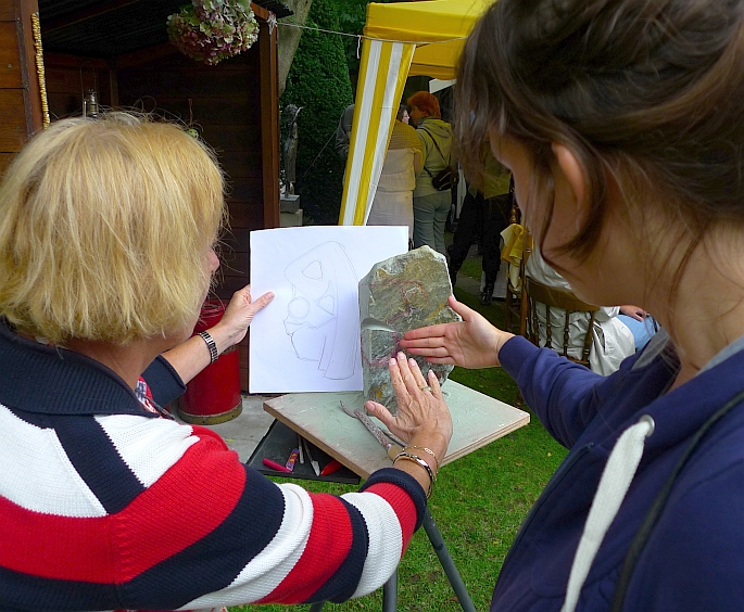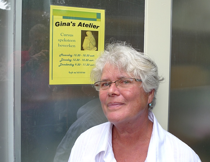 Ga dan eens langs bij Gina Calis, Mosselweg 28. Ze heeft een leuk atelier en geeft cursussen boetseren en speksteen bewerken.