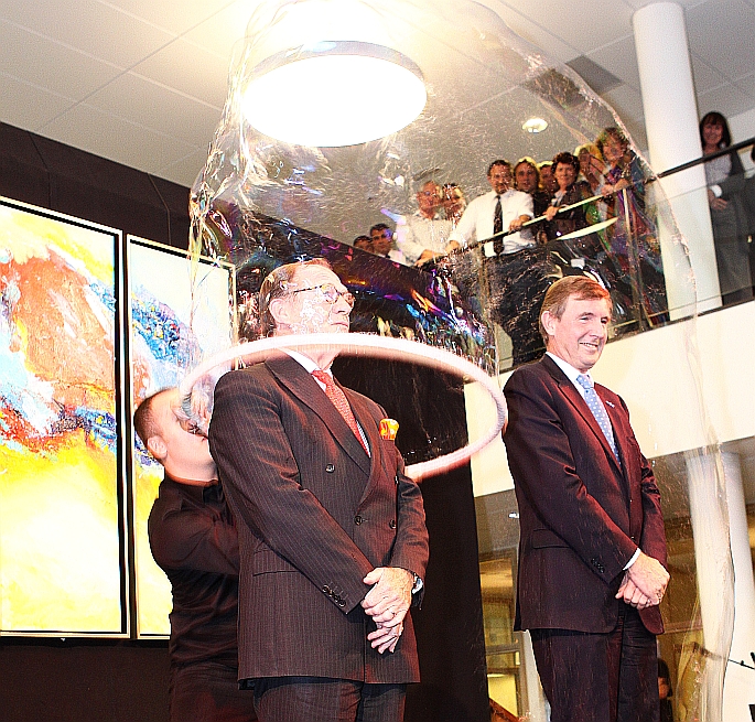 ... , waarna een zeepbelartiest een performance gaf, ...