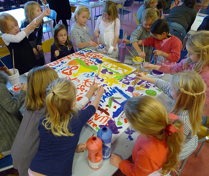 … werd op de OBB gevierd met een paar kinderen van ‘De blauwe vogel’, het maken van kunstwerken die later voor de Benjamin Foundation (zie ook Prikbord) worden geveild en het oplaten van heleboel ballonnen als verjaardagsgroet voor Benjamin. (Mouseover-tekst.)