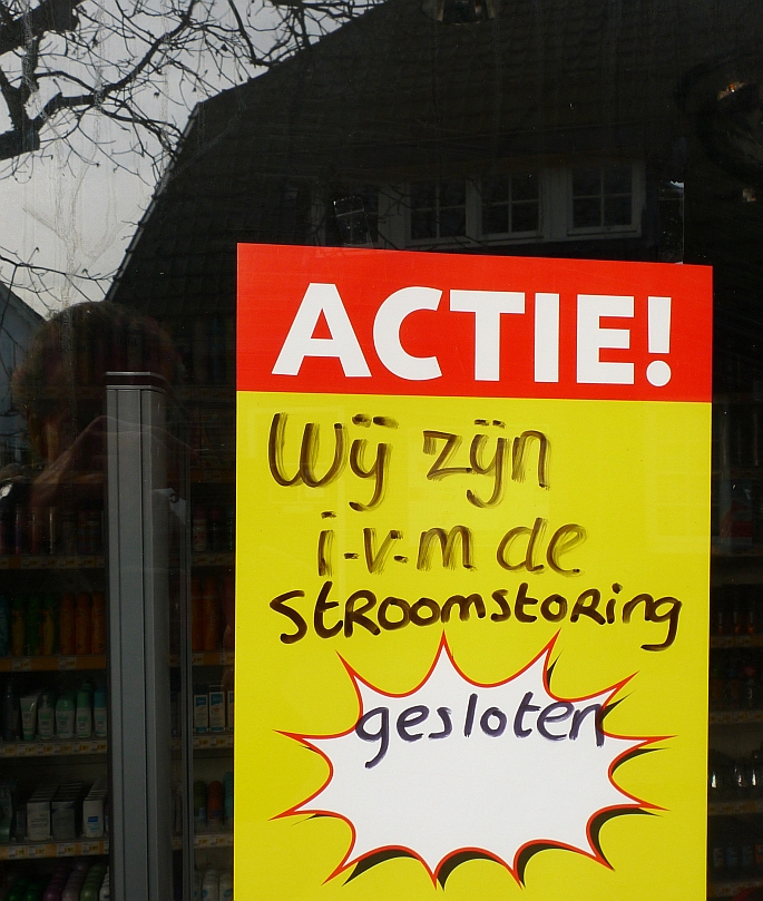 Stroomstoring tussen 05.00 en 06.30 uur en vervolgens tussen 12.45 en 14.30 uur.