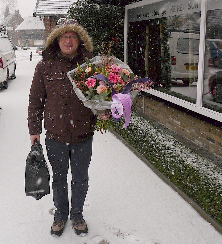 Mooie foto van een stralende bruidegom, met prachtige bos bloemen van “Altijd Bloemen” en een heerlijk taartje van “Remy”! Het is alleen geen 10 maar 18(!) jaar getrouwd. Toen hadden wij gelukkig beter weer. LikeLike Beantwoorden