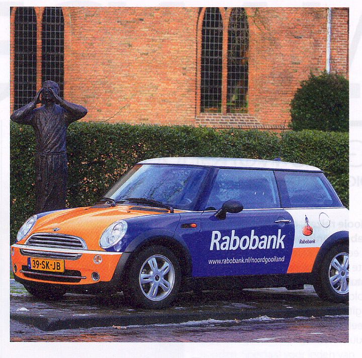 In de ledenperiodiek Dichterbij heeft Rabobank Noord Gooiland ook de rubriek ‘Raad waar die staat’. Men moet raden waar de Rabomini staat (ergens in het ‘werkgebied’ van de bank); de winnaar ontvangt een goed gevulde picknickmand. Het is een vriendelijke manier om bij de lezers de mooie plekjes van de regio in beeld te brengen. Daarmee draagt de Rabobank bij aan wat sociologisch heet ‘de maatschappelijke gewaarwording’.