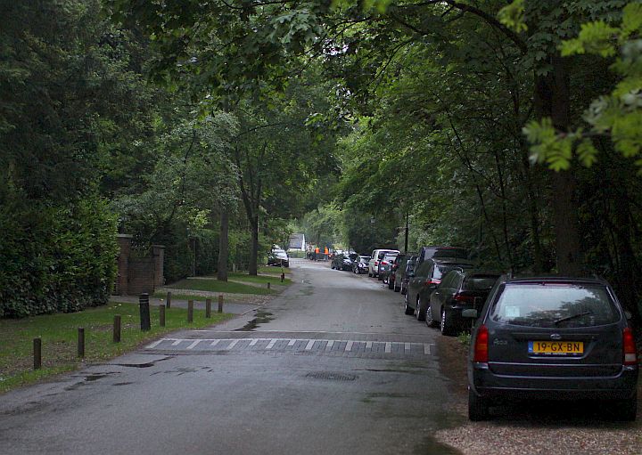 Tegenover Rust Wat (gisterenavond openluchtbiosbad) was een feestje. Naar verluidt werden twee (echte-)personen 40. Feestje dus. Nou ja: naar verluidt was het een vette partij. Met zo’n 200 drankje-hapje-kakelaars die men al bij het Tolhuisje kon horen oereroezemoezen. Het leek net de Huishoudbeurs bij de stand met de gratis sherry – u weet wel. Een deeltje van de genodigden was per (bak)fiets gekomen – heel goed, fijne mensen, strakke konten, positief moreel. Een ander grootdeel kwam per bolide. Gastheer en gastvrouw kennen hun netwerk-leden kennelijk goed en hadden derhalve een zeskoppig parking-valet-team ingehuurd: beschaafd ogende semi-studentikosi die zorgden voor het parkeren van de vierwielers. Waar? Nou eh…, omdat gastheer en gastvrouw behoren tot de Schapendrift-bewoners die met illegale palen de berm voor hun huis hebben gekaapt, werden de auto’s dus niet voor hun eigen breedgevelpand neergezet maar wel onder meer in de bermen voor de woningen van buurtbewoners die niet zo asociaal zijn (foto’s). Nogal dubbel dus.