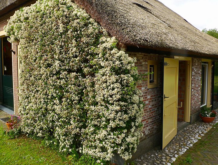 Zuidoost-Azië. een paar jaar geleden bleken ze vatbaar voor ‘perenvuur’ maar gelukkig is dat nu wat minder. De bloemen zijn prachtig, evenals de bessen, waar de merels weer gek op zijn. Door de doornen die er rijkelijk aan zitten, is het tevens een ‘veilige broedplaats’ voor vogels.