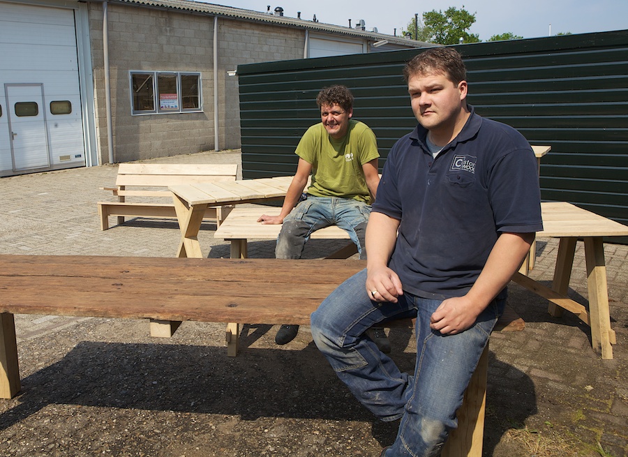 Customwood maakt uw nieuwe (tuin)meubilair – robuuste modellen, stevig materiaal. Morgen te zien op de Braderie in Huizen en op werkdagen in de werkplaats aan het Singel. Zie ook de sponsorvermelding rechts. Sjaak Schipper en Peter Kaasjager (kan ook lachen) geven u graag alle informatie en advies.