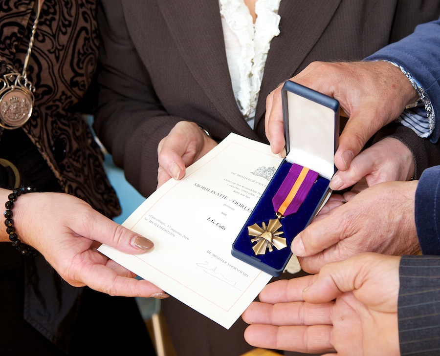 Burgemeester Joan de Zwart overhandigde vanmiddag aan drie kinderen van Lammert Calis (1919 – 2007) het Mobilisatie-Oorlogskruis uit. Hun vader was ten tijde van de Duitse inval in mei 1940 soldaat in de Grebbeberglinie en is daarom nu posthuum onderscheiden.