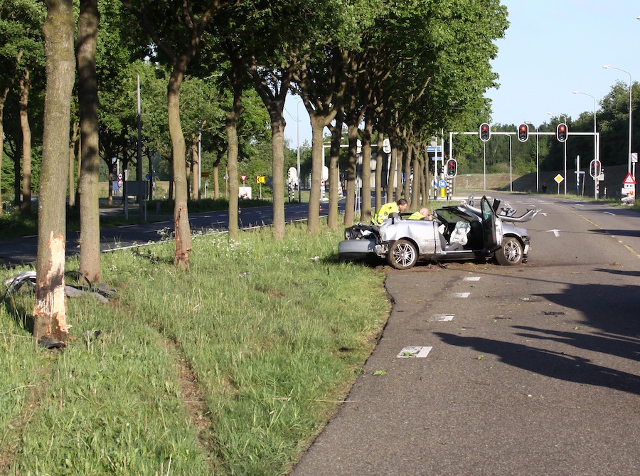 Info van de politie: ‘Een 21-jarige automobilist uit Baarn reed met zijn auto op de Randweg Oost waar hij in botsing kwam met een boom en tegen een tweede boom tot stilstand kwam. De man kwam bekneld te zitten in de auto en werd door de brandweer bevrijd. Met onbekend letsel is hij overgebracht naar het UMC. De automobilist heeft vermoedelijk ervoor op de kruising bij de A27 een bestelauto geschampt. De toedracht van het ongeval wordt onderzocht. De auto is afgesleept.’