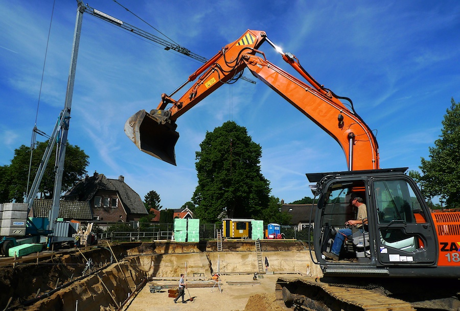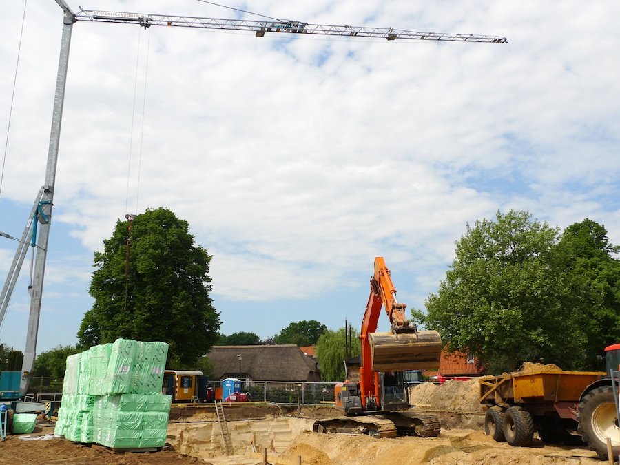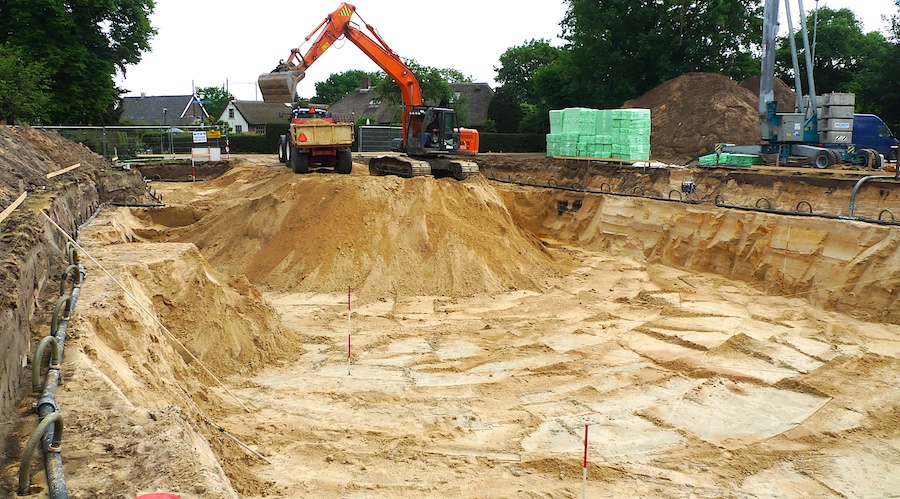 Angerechtsweg 12. Er wordt ca. 2000 m3 uitgegraven, 3,5 meter diep.