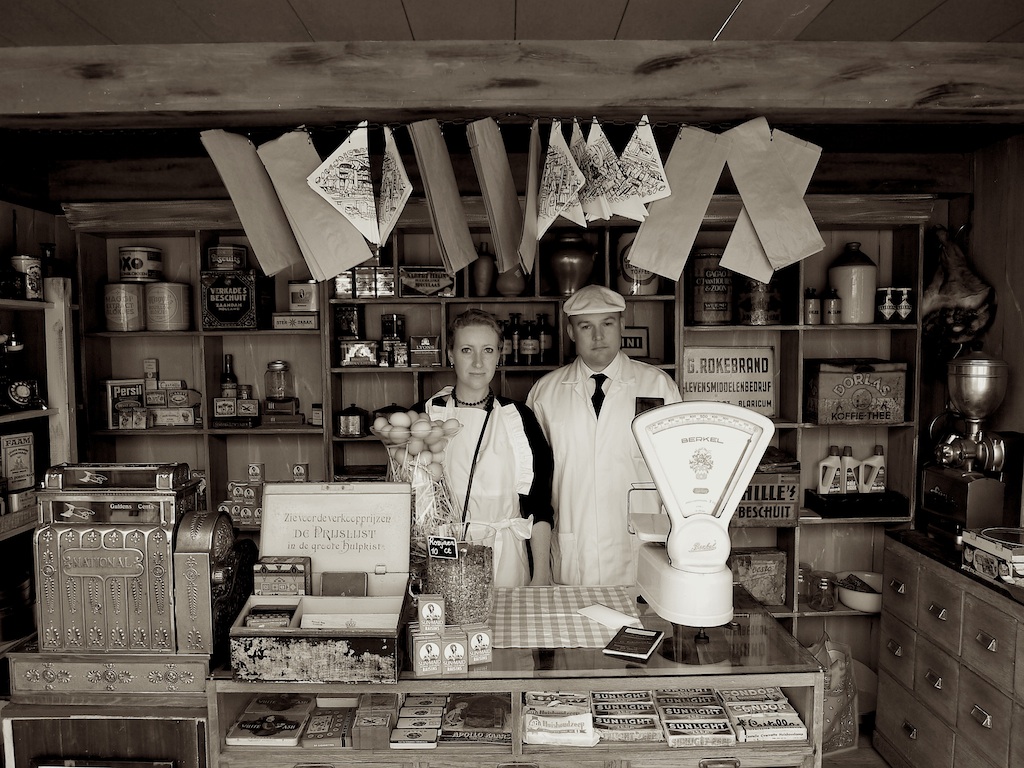 Ik weet niet wie dat winkeltje opzet maar ik vind vooral het gevelbord van Ome Gijs Rokebrand geweldig.