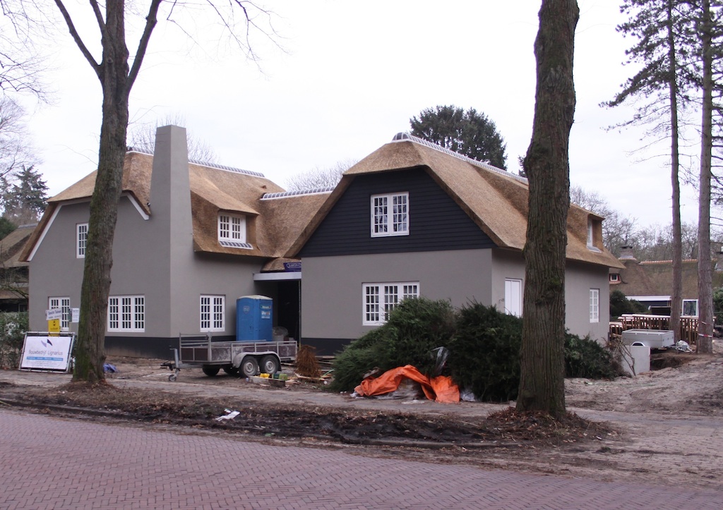 De eigenaar zal het wel prachtig vinden, maar ik vind het er niet mooier op geworden. Nu maar hopen dat de grijze kleur grondverf is en het pand opgevrolijkt wordt met een gezellige lichte kleur.