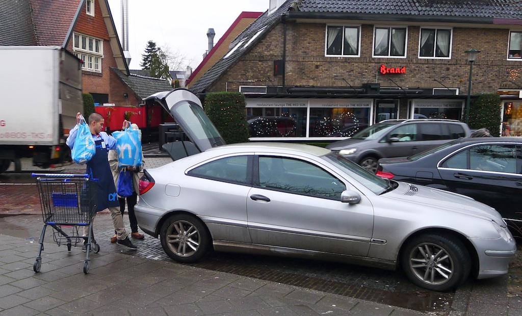 De auto staat geparkeerd op een invalidepakeerplaats, dus het is niet zo vreemd dat deze service wordt verleend. AH Blaricum kennende gebeurt dit ook echt. Ik neem wel aan dat de auto ook inderdaad aan een mindervalide toebehoort!!