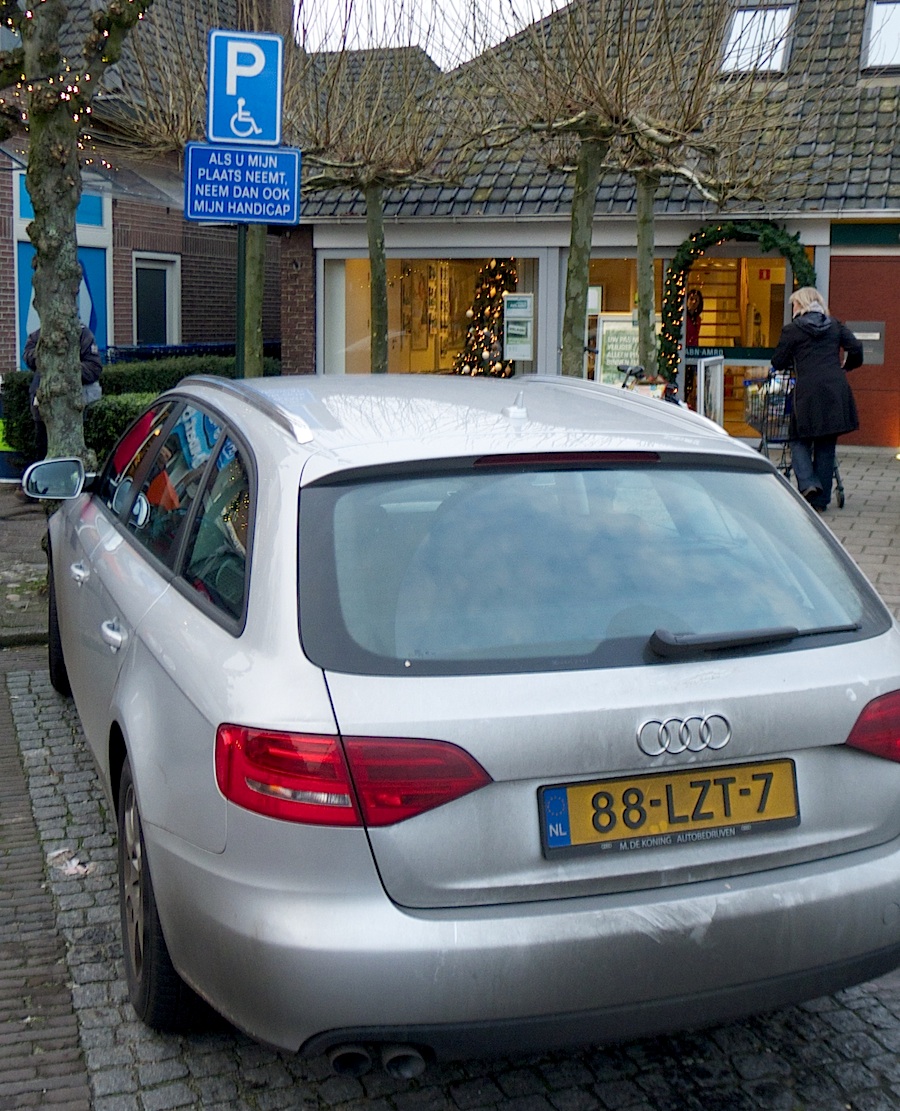 Zie het als een flitspaal: fotomateriaal dient als bewijs! Bekeuring kan verzonden worden naar de eigenaar van dit voertuig. Als we mogen aannemen dat achter de voorruit geen invalidekaart ligt.