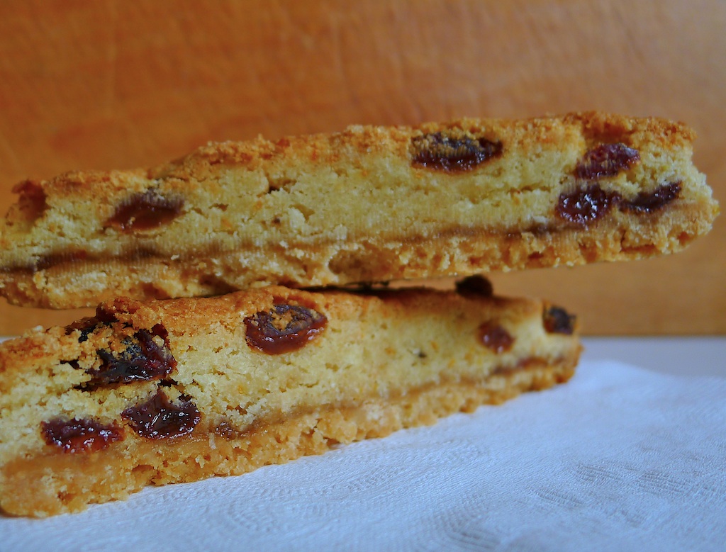 Dit is Paradise Slice, met o.a. marmelade, gemalen amandelen, gemalen kokos, sinaasappelschilrasp en rozijnen.
