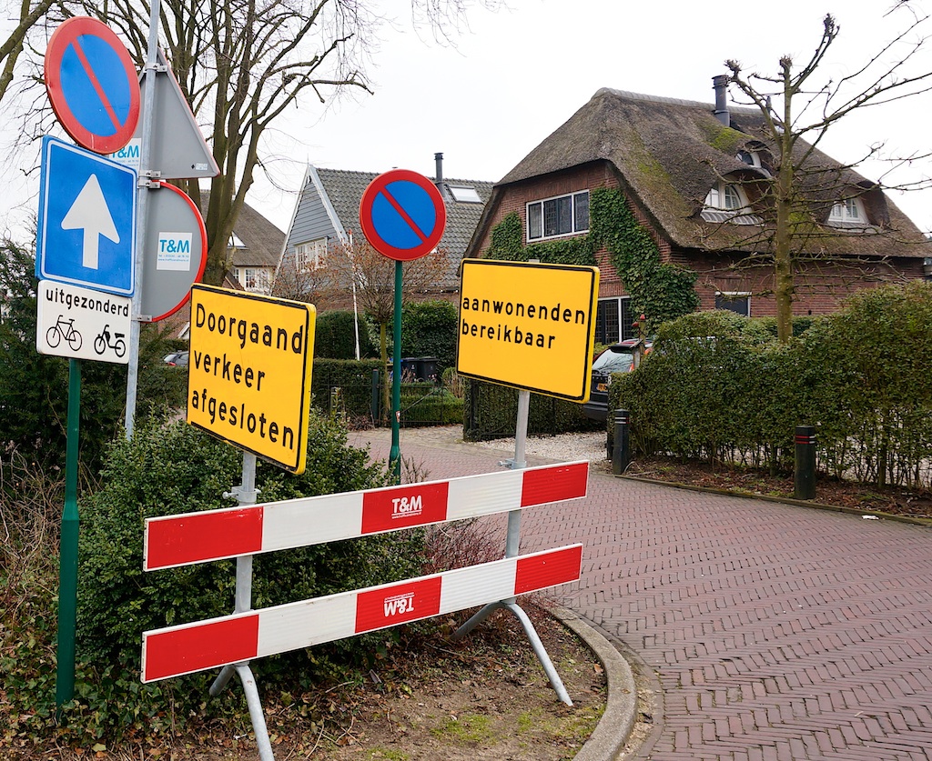 Maandag a.s. om 07:00 uur wordt het kruispunt Naarderweg/Huizerweg/Bergweg voor zes weken afgesloten. Tientallen borden moeten voorkomen dat het Dorp een doolhof wordt.