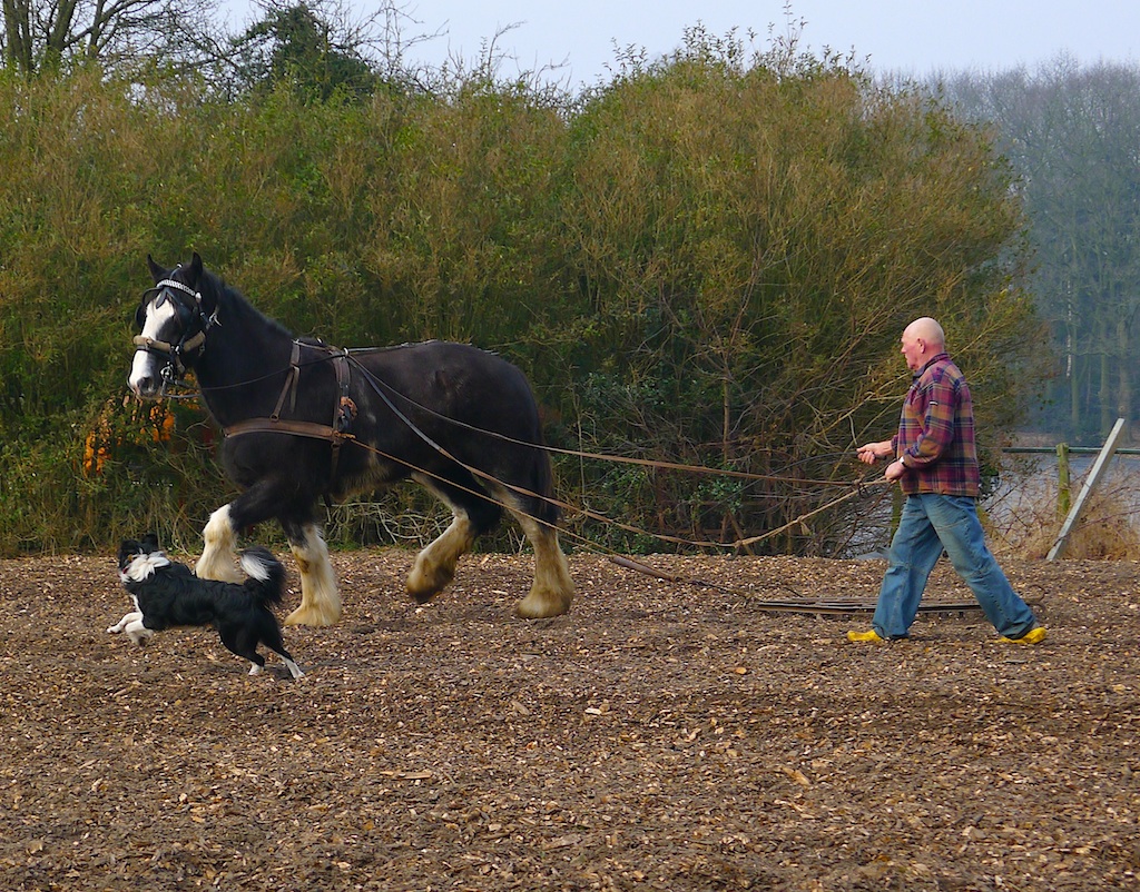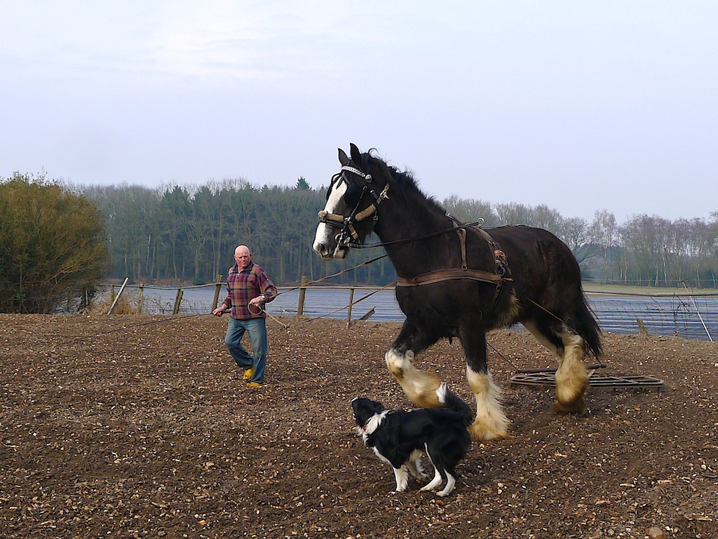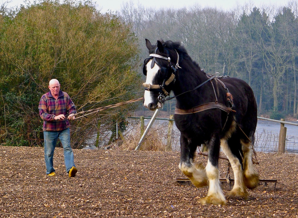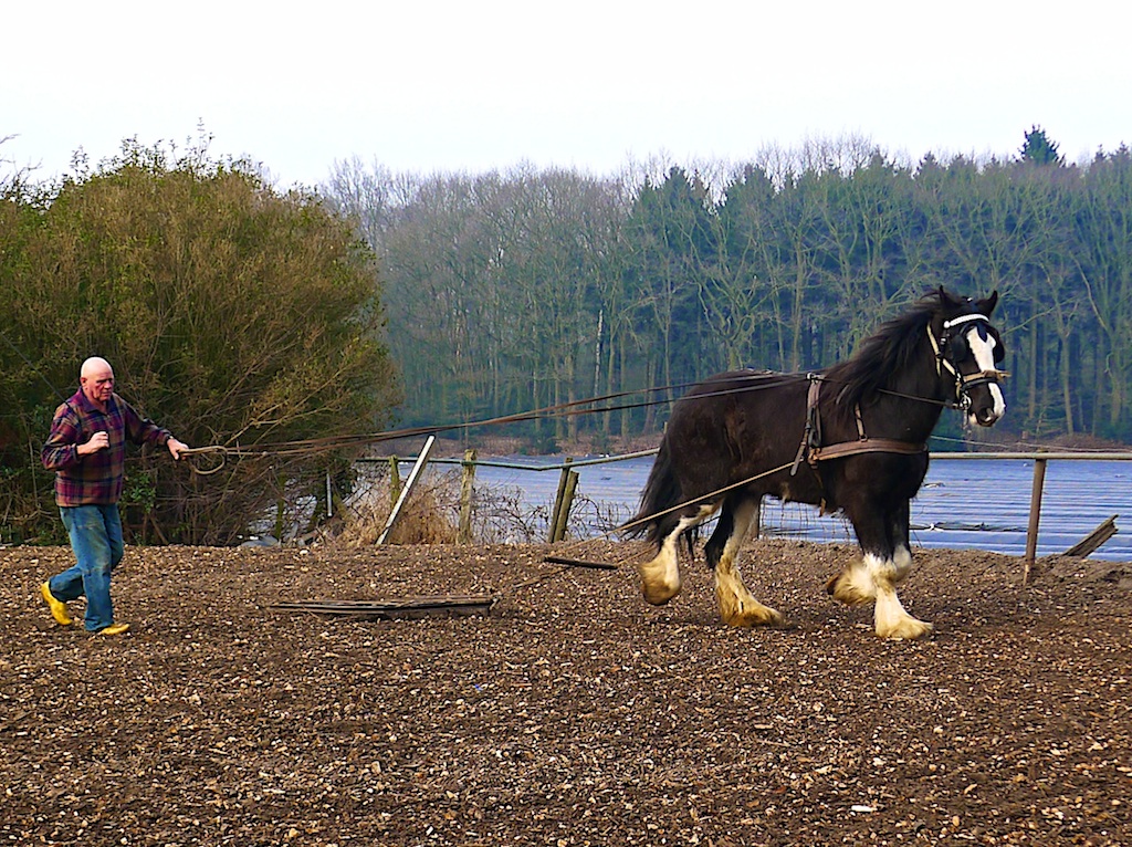 Is hij niet gewoon het veld aan het omploegen op ouderwetse wijze! Overigens een prachtig gezicht!
