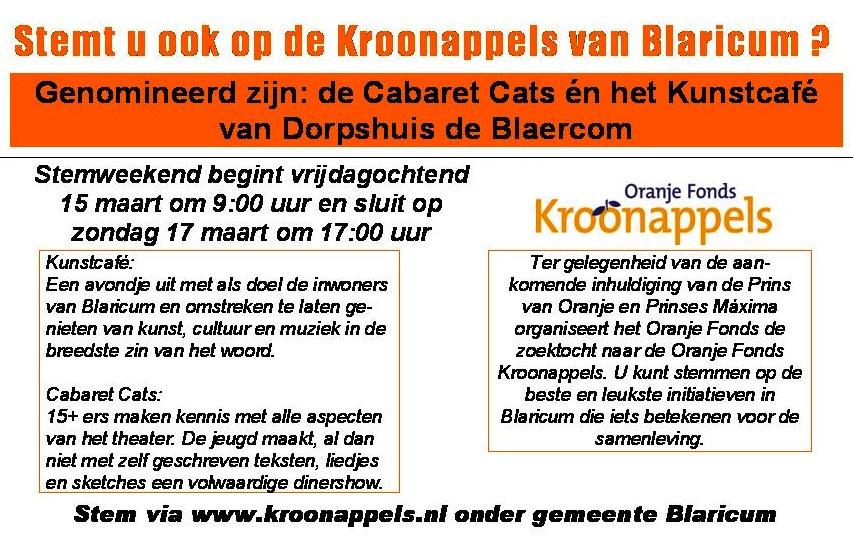 Kroonappels – u kunt nu stemmen Oog op Blaricum 't gooi, blaricum, foto's 15 maart 2013 Ga naar KroonappelsBlaricum (rechtsboven op deze site) en stem. Delen kan hier:Tweet E-mail een link naar een vriend (Opent in een nieuw venster) E-mail Afdrukken (Opent in een nieuw venster) Print Delen op WhatsApp (Opent in een nieuw venster) WhatsApp Meer Delen op Threads (Opent in een nieuw venster) Threads Vind-ik-leuk Aan het laden... Gerelateerd Gepubliceerd door Oog op Blaricum Bekijk alle berichten van Oog op Blaricum Gepubliceerd 15 maart 2013