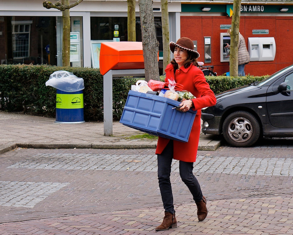 Funeral planner Caroline van Weede is ook echtgenote, moeder, huisvrouw en vandaag kennelijk aan de beurt voor de boodschappen. Oog hield het laadluik van haar auto open – ook leuk.