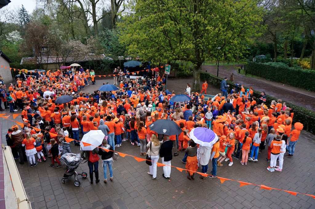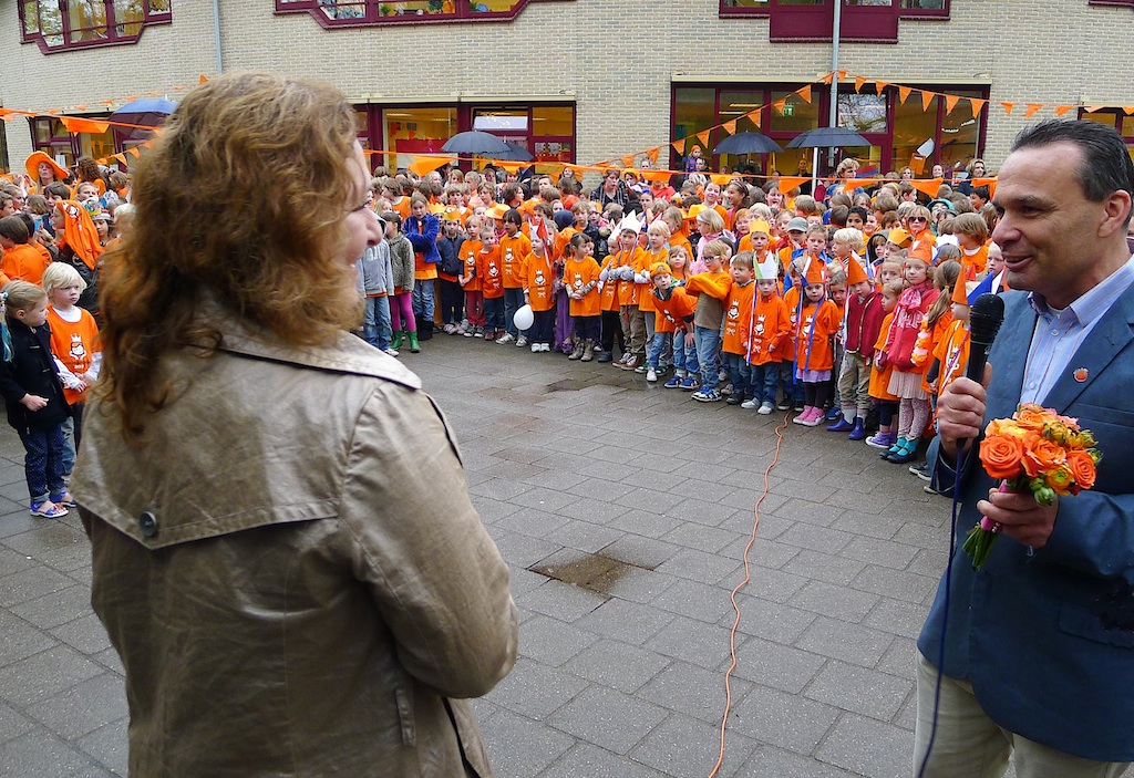 ondanks dat het oranje zonnetje verstek liet gaan…zagen de kindertjes er allemaal vrolijk ( oranje gekleed) uit