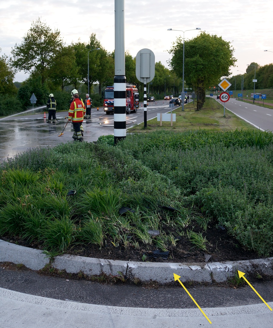 20:30 uur: Stichtseweg/afrit A27. Een Renault kwam met onbekende snelheid de afrit A27 af. Het verkeerslicht stond op volgens de bestuurder op groen, vanaf de Stichtseweg kwam een politie-auto aanrijden met zwaailicht maar zonder sirene. Volgens een fietser (getuige die zich later bij Oog heeft gemeld) die op de Gooyerweg voor zijn verkeerslicht stond te wachten, reed de politie-auto door rood. In de geslaagde poging van de Renault om een aanrijding te vermijden, raakte de bestuurder op het kruispunt Stichtseweg/Randweg-Oost/af- en oprit A27 de macht over het stuur kwijt. Zijn auto schoot over de betonnen rand van het kopstuk van de middenberm, liep daarbij vier klapbanden en een verbrijzeld oliecarter op, schampte de paal van de verkeerslichten en kwam met een grote boog circa 60 meter verder op de rijbanen voor het tegemoetkomende verkeer terecht. De brandweer kwam ter plaatse om de olieresten van het wegdek te verwijderen.