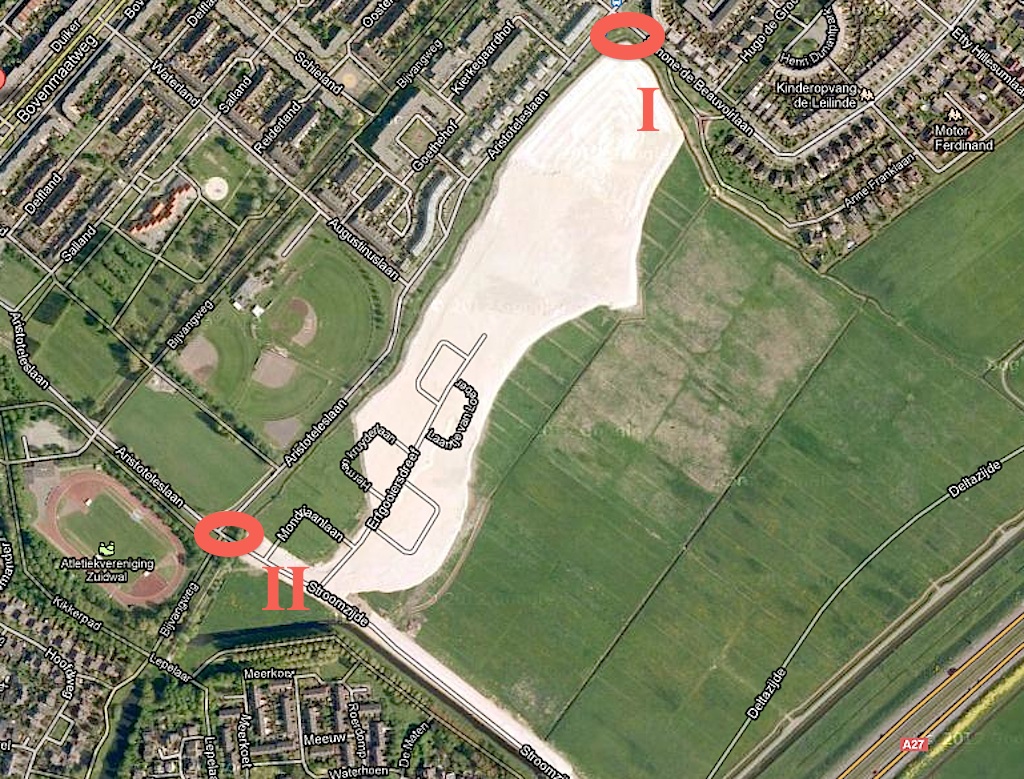 Rontonde I (en eerste foto) is Floris V-dreef/Aristoteleslaan; nr. II is Stroomzijde/Aristoteleslaan.