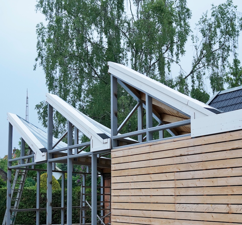Atelier in aanbouw achter de woning van Peter Lanphen (in aanbouw) aan de Meentweg