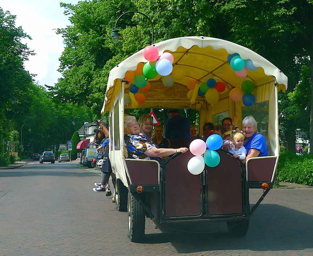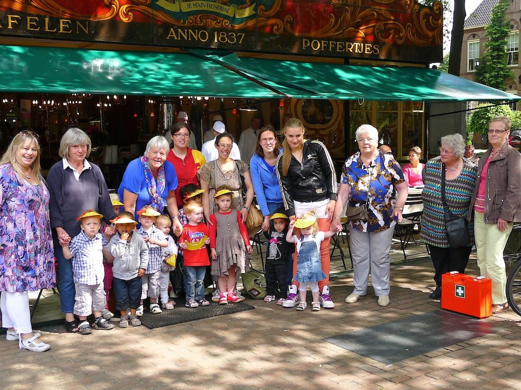 Om de laatste peuterspeelgroepdag gezellig en lekker uit te luiden, toog Peuterspeelgroepje ’t Molenwiekje uit de Bijvanck vanochtend per paard en kar naar de poffertjestent in Laren. Het was tevens het afscheid van juffies Cynthia, Gunes en Brenda.