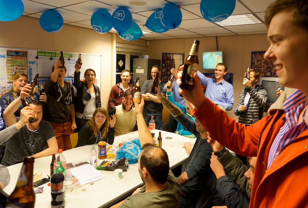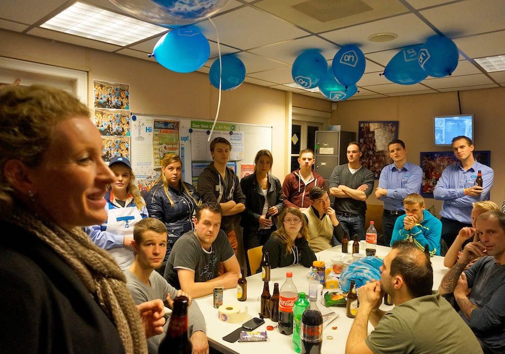 In de wedstrijd welke supermarkt van alle circa 4500 supermarkten tot de beste van Nederland 2013 zal worden uitgeroepen, is AH Blaricum doorgedrongen tot de top-60. Extra feestelijk is het feit dat ‘onze AH’ van alle supermarkten in Noord-Holland de beste is! AH-ondernemer Marieke Ton was dan ook dolblij en supertrots toen ze vanmiddag een deel van het personeel bedankte – en inderdaad: daar mag op gedronken worden!