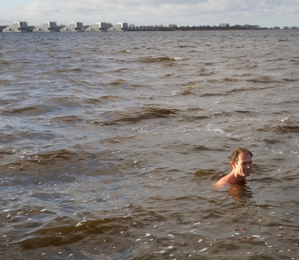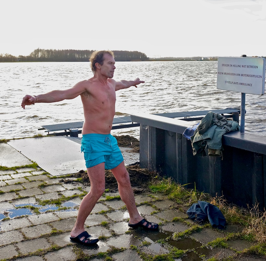 Voor zijn deelname aan de beklimming van de Kilimanjaro aan het einde van de maand – met 25 personen die lijden aan kanker, reuma, astma, ziekte van Cohn, slechts gekleed in een korte broek en onder leiding van de wereldvermaarde iceman Wim Hof – is Henk van den Bergh volop in training. Daar hoort bij een dagelijks bad van 5 minuten in het Gooimeer, nu zo’n 7 graden. Meer info.