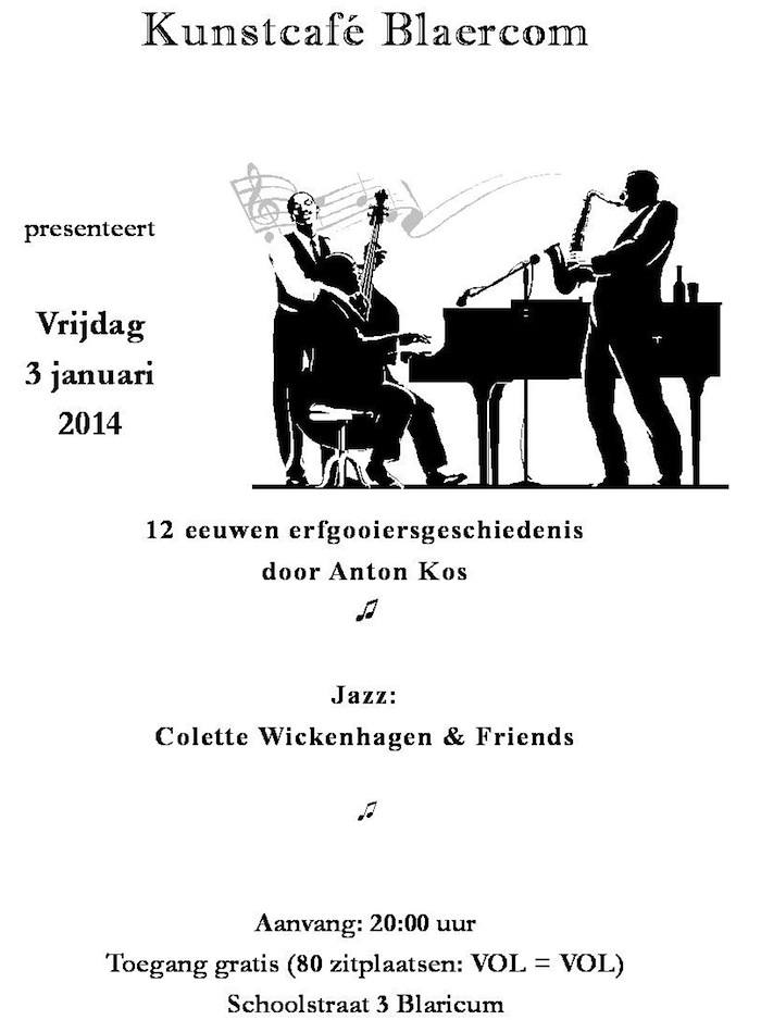 1. Het eerste Kunstcafé in het nieuwe jaar in dorpshuis Blaercom presenteert vrijdag 3 januari een interessant programma over de historie van de erfgooiers en natuurlijk muziek.