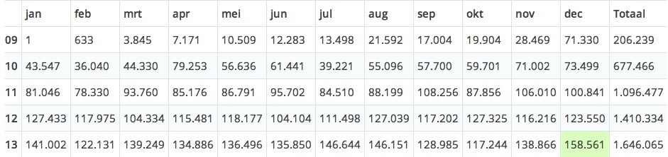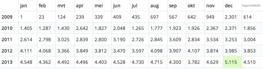 Gemiddeld aantal bezoeken per dag: 4.510; = + 17,1% (2013 t.o.v. 2012)