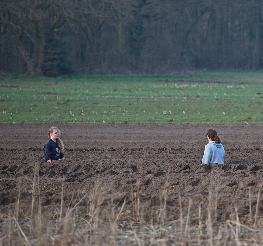 1. Grappige foto, Going Underground! We stoppen hier tweejarige aspergeklauwen in diepe geulen, pas over twee jaar kunnen we beginnen met de oogst van deze planten.