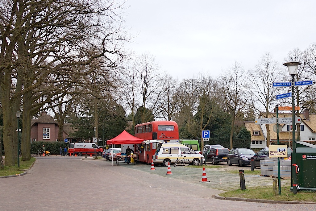 Terwijl de laatste hand wordt gelegd aan de renovatie van de Torenlaan-fietspaden, bereidt een cateringcrew zich voor op de komst van dorstige en hongerige deelnemers aan de opname voor een VPRO-kinderserie op de Bussummerweg.