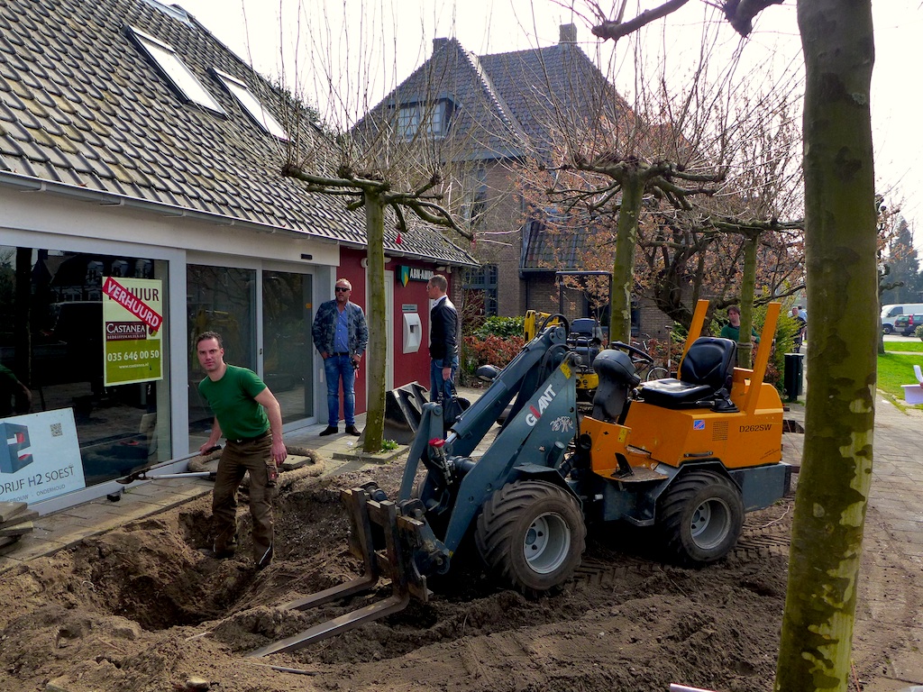 De bomen voor het a.s. koffie- en theehuis van Gordon zijn vanochtend niet verwijderd, maar wel verplaatst. Aldus zal er een kloek terras ontstaan.