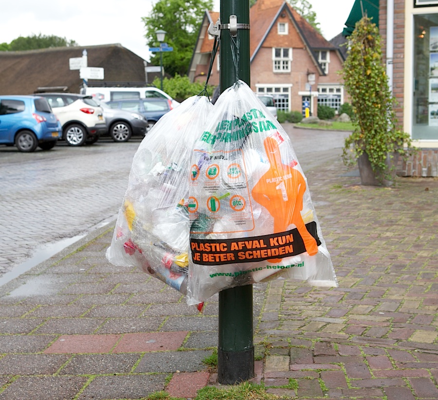 Ik heb de indruk dat men, zodra de zak vol is, deze al op zo’n plek ophangt. Terwijl er door de GAD huis aan huis een schema is afgegeven waarop de ophaal-data voor plastic-afval staan evenals de data voor het gewone vuilnis en het GFT.