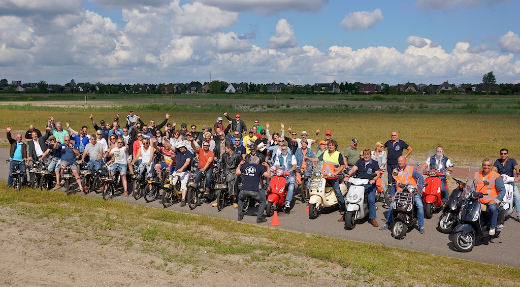 11:00 uur: de Gezelligheidsrit voor rijwielen met hulpmotoren in de Blaricummer Meent, op weg naar de Stichtsebrug en het verre polderland.