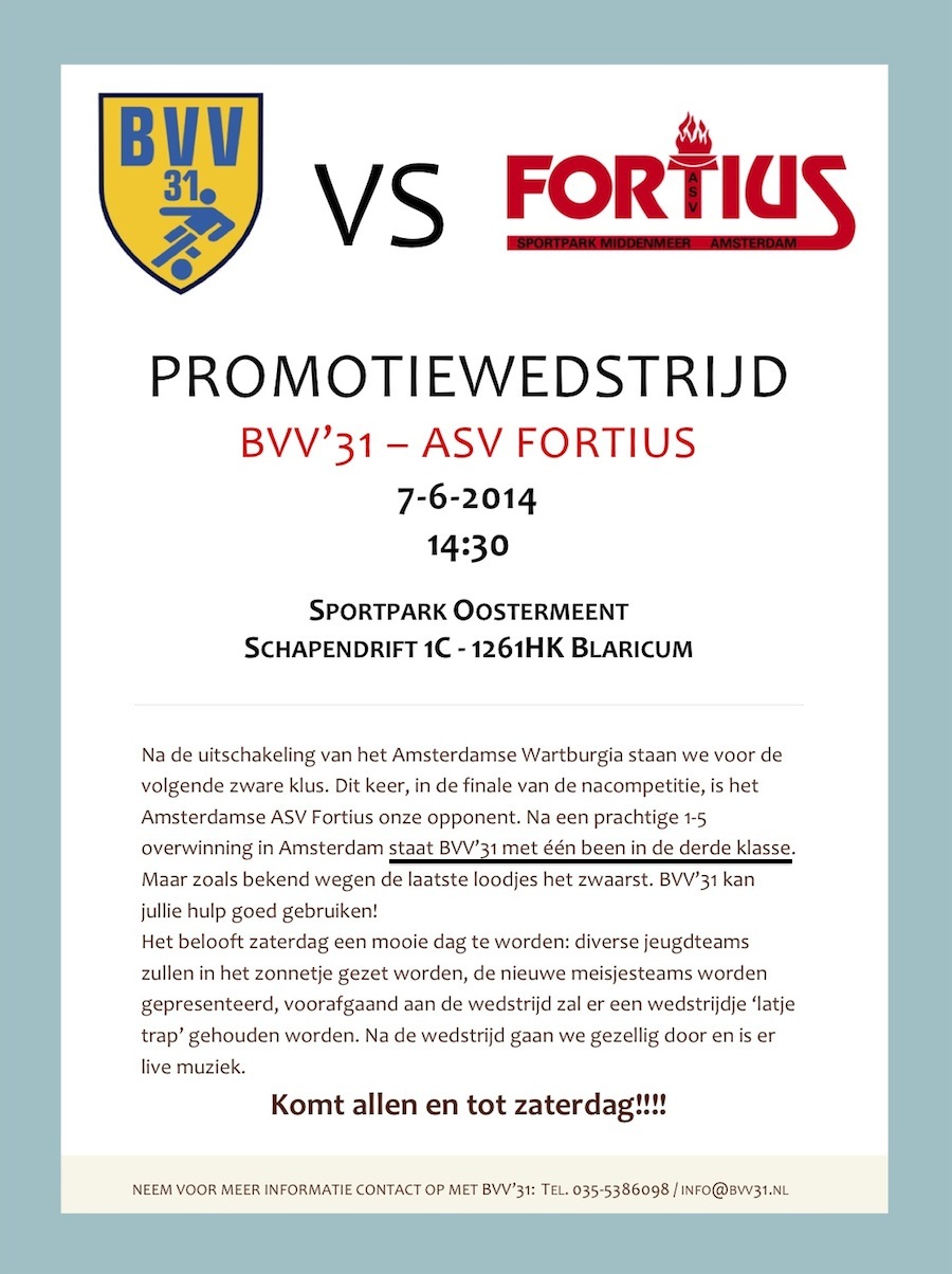 Nou ja, bij wijze van spreke dan. Feit is wel dat het eerste a.s. zaterdag kan promoveren naar de 3e klasse. Supporters en toeschouwers zijn meer dan welkom. Die kunnen niet alleen genieten van een fijn potje voetbal, maar ook van allerlei feestelijkheden.