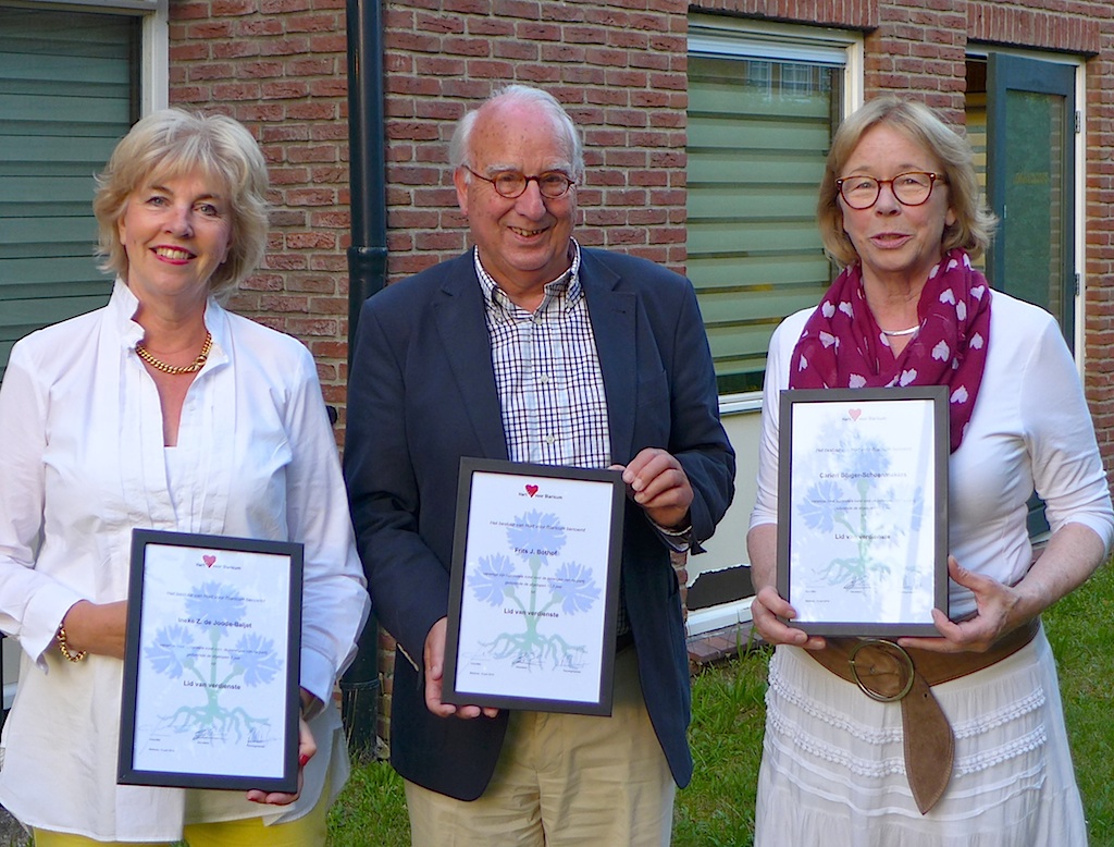 Gisterenavond zijn op de algemene ledenvergadering van Hart voor Blaricum v.l.n.r. oud-wethouder Ineke de Joode-Baljet, oud-partijvoorzitter Frits Bothof en oud-fractievoorzitter Carien Bölger-Schoenmakers benoemd tot Lid van verdienste.