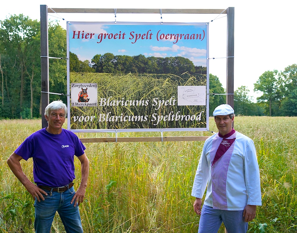 Boer Nico verbouwt op zijn akker bij de Houtwal spelt. Begin augustus gaat hij oogsten en zal dan aan bakker Frans 2 ton speltmeel leveren. Die gaat daar onder andere op De Dag van het Werkpaard (half spetember) Blaricums speltbrood van bakken.