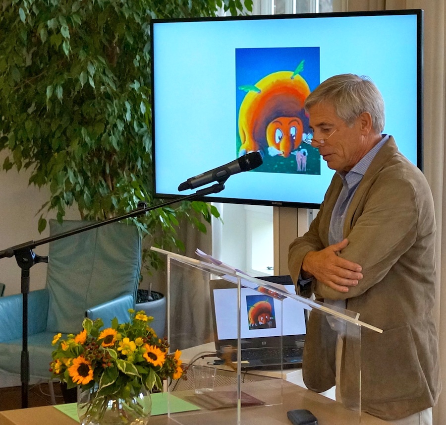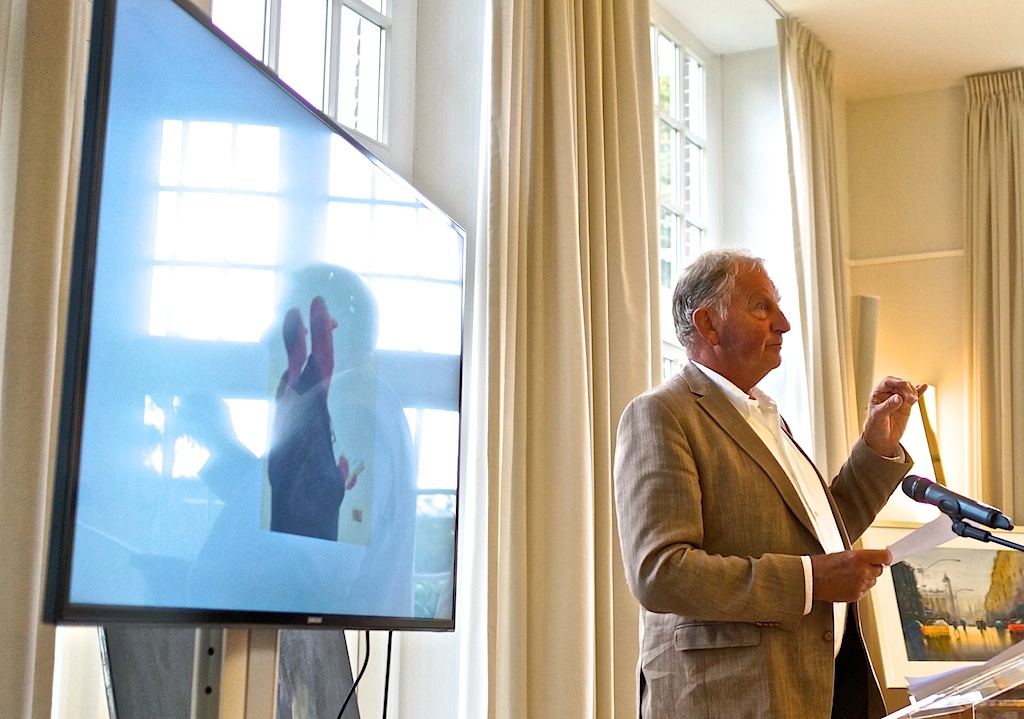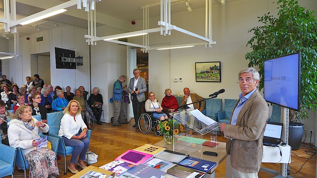 Gemeentehuis, 16:00 uur: na een welkomswoord door kunstenaar Jan Min werd de Atelierroute 2014 geopend door kunstpedagoog Maarten Tamsma (Haarlem).