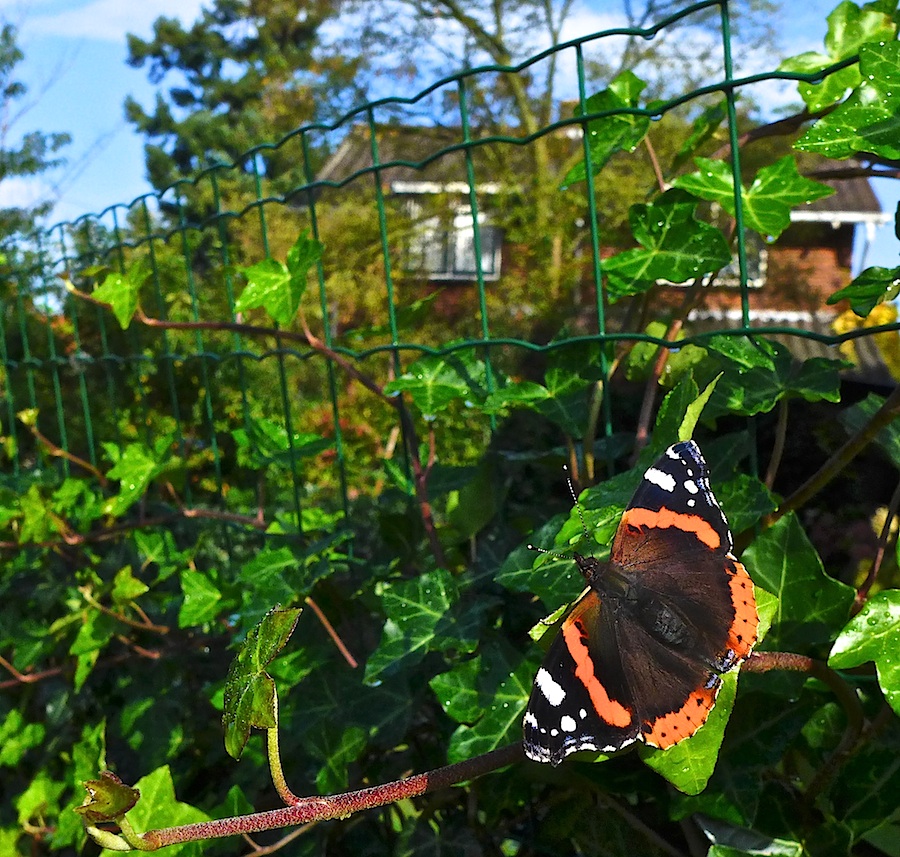 Fraaie Atalanta! Maar geen typische lentevlinder, ze moeten eerst terugkomen van hun winterverblijf in zuidelijke landen. Nu zijn ze zich aan het voorbereiden op de trek daarheen, maar zolang het nog vrij zacht is blijven ze nog lekker hier rondfladderen. (Overigens kiest een aantal wel hier een overwinteringsverblijfplaats). Een mooie documentaire ´Vanessa Atalanta´ uit 1990 brengt de trektocht van de vlinder van Spanje naar Drente in beeld.