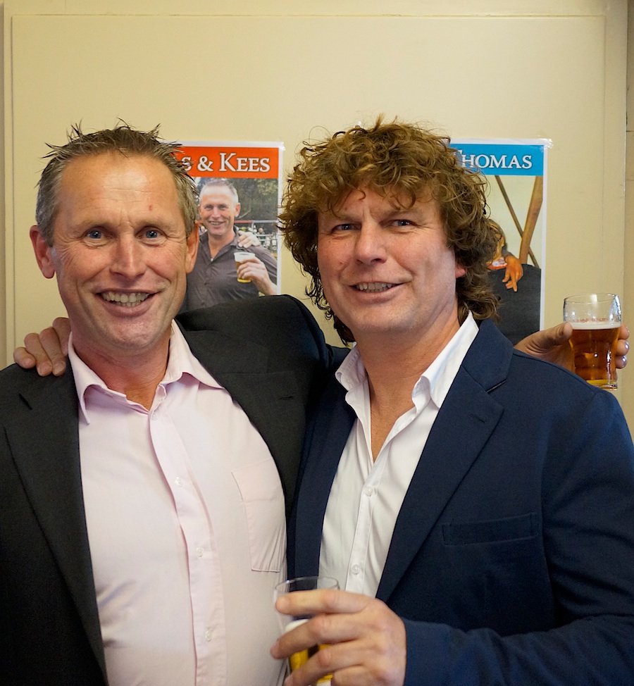 En Kees, nog steeds de kop niet schuw! Dat dat nog een jaar of 50 zo mag blijven! Thomas heeft er al jaren een motortje voor nodig, dat houd je nog wel 50 jaar vol met een beetje sleutelen. Van harte heren!
