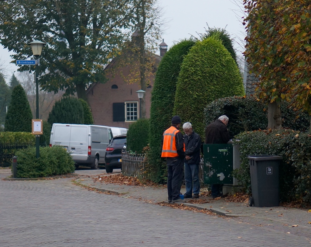 Maandag jl. is dus op hoek Brinklaan/Dorpsstraat (klik) – naar zojuist is gebleken- niet in opdracht van KPN door het bedrijf Acordo en kabeltje verlegd naar de nieuw geplaatste kast. Dit in verband met de glasvezelvoorziening. Inzet: drie man en drie auto’s. Rond 11:45 uur kreeg een deel van de abonnees weer telefoon en internetverbinding, een aantal (particulieren, winkels en ZZP’ers) echter niet. Dinsdag tussen 14 en 16 uur kwam een monteur kijken en studeren, maar hij kon niets vinden of oplossen. Woensdag idem – inzet twee man, twee auto’s. Vandaag idem – inzet drie man, twee auto’s. Het zijn steeds andere monteurs, met steeds dezelfde bedenkelijke ‘ik zou het niet weten’-blik. Klagers krijgen bij KPN steeds andere medewerkers aan de telefoon en steeds ook de mededeling dat er ‘in uw gebied geen storing is’. Men is niet blij …