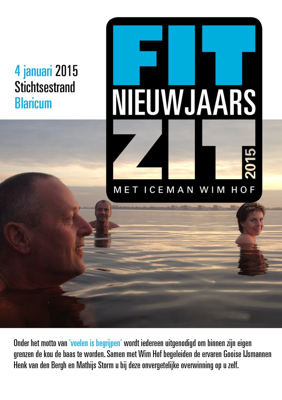 Voorafgaand aan het Blaricums Midwintervuur organiseert Health Center FIT op 4 januari de eerste FIT-NieuwjaarsZIT. Om 12.00 uur gaan de deelnemers bij de Blaricumse Reddingsbrigade in het ijskoude water van het Gooimeer ZITTEN. Uniek hierbij is de aanwezigheid én actieve bijdrage van de beroemde ‘Iceman’ Wim Hof, bekend door zijn vele uitzonderlijke prestaties in extreem koude omstandigheden.