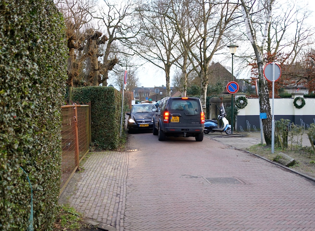 Maar, waarom hier geen eenrichtingverkeer voor auto’s ingesteld? Probleem opgelost, dunkt mij.