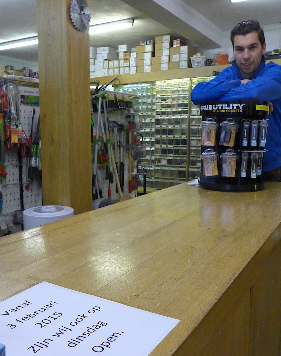De Blaricumsche IJzerhandel – wellicht gaat later dit jaar ook de middagsluiting eraf.